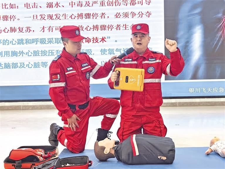 景向軍是一名退役軍人,自2019年救援隊籌建之初就加入了這個大家庭。今年4月底在銀川舉辦的全國青少年足球比賽中,一位小朋友被足球擊中臉部導致鼻部大出血。“我們立即采用正確方法止血——讓傷員低頭而不是仰頭,捏住鼻翼并用敷料填塞。”景向軍回憶著當時的處置細節(jié),“血止住后,孩子情緒逐漸平穩(wěn)。”景向軍說。