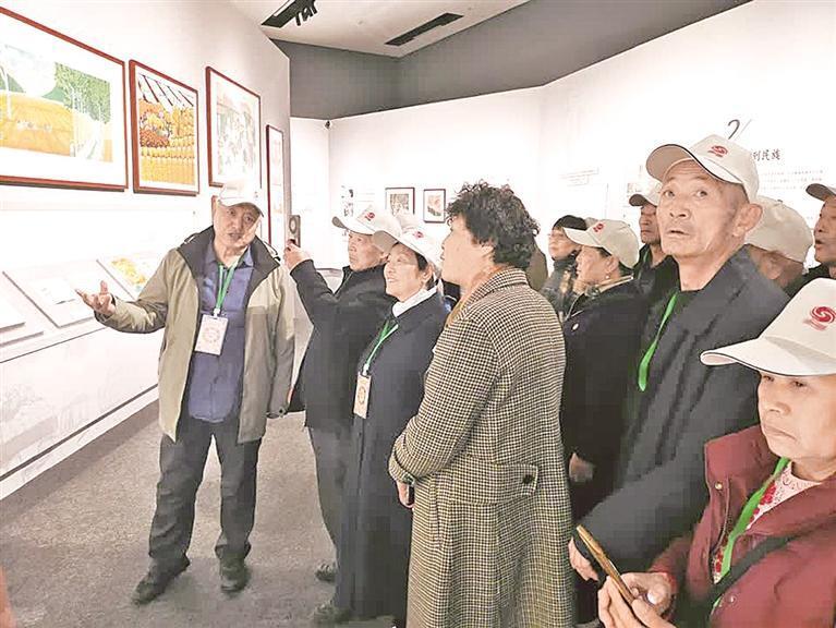 原州區彭堡鎮吳磨村的張國銀看到王存福激動的模樣,忍不住打趣:“這里也有我的畫作呢。”一句帶著鄉音的調侃,逗樂了同行的鄉親。笑聲里既有鄉親們夢想成真的羞澀,也有黃土地上耕耘者終獲回響的驕傲。