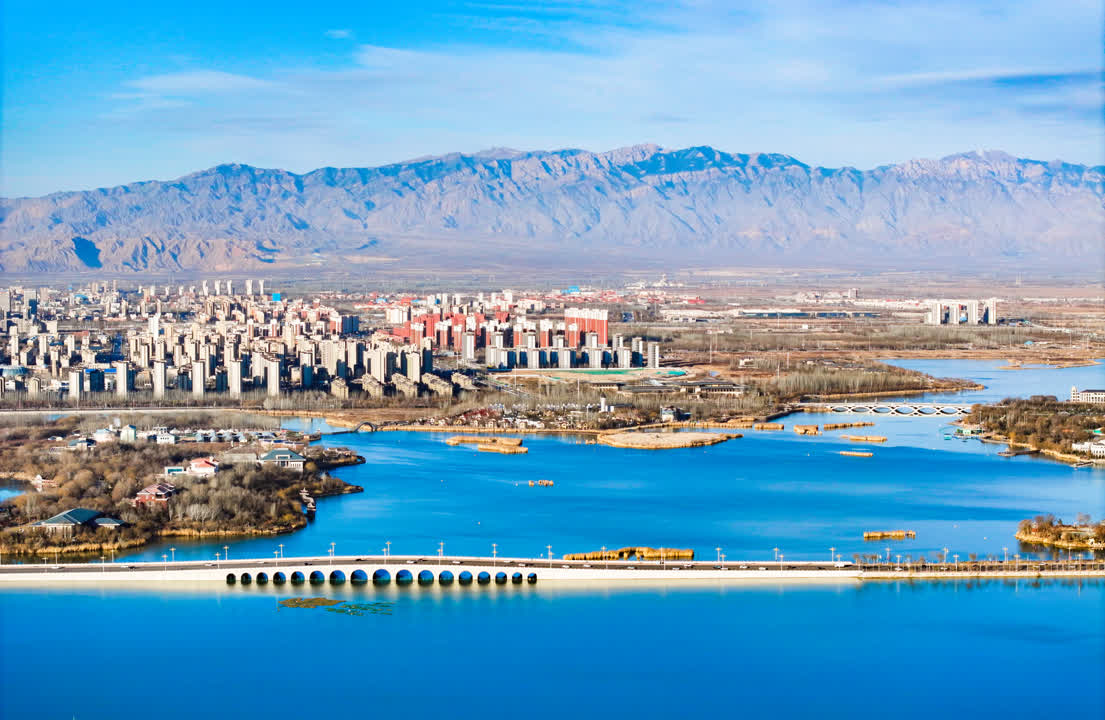 12月2日,銀川閱海湖與賀蘭山構成一幅“水天一色、山景相映”的生態畫卷。記者 馬楠 攝