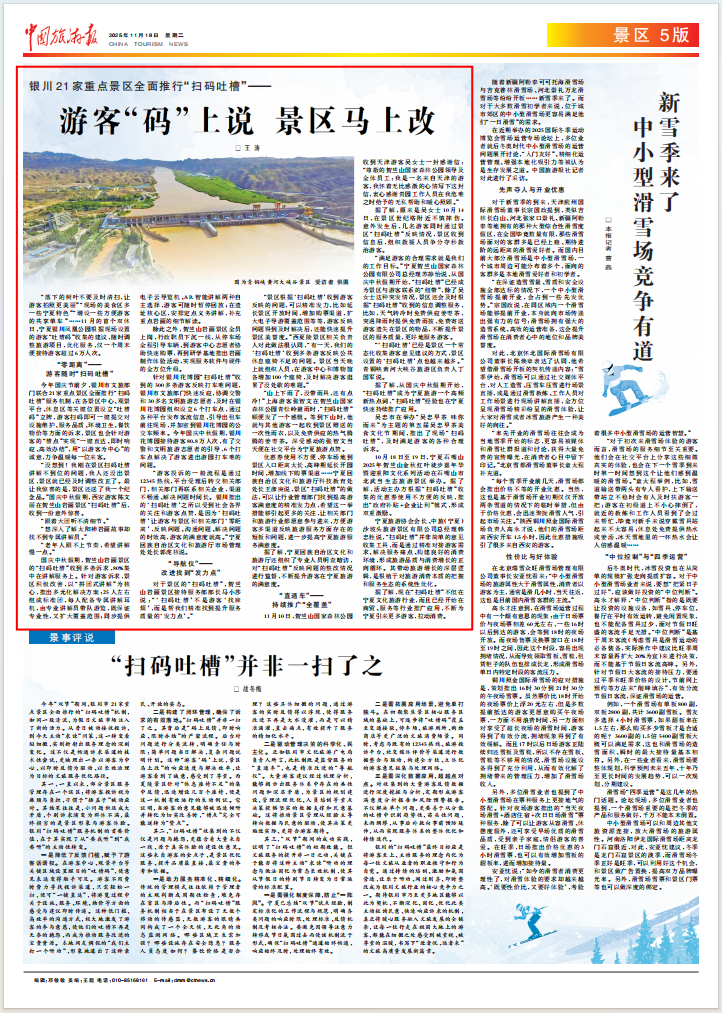 “游客投訴的一般流程是通過12345熱線,平臺受理后轉交相關部門,相關部門再聯系相關企業,渠道不暢通、解決問題時間長。銀川推出的‘掃碼吐槽’之所以受到社會各界的關注和游客點贊,是因為‘掃碼吐槽’讓游客與景區和相關部門‘零距離’,反映問題、溝通問題、解決問題的時效高,游客的滿意度就高。”寧夏回族自治區文化和旅游廳市場管理處處長郭虎林說。