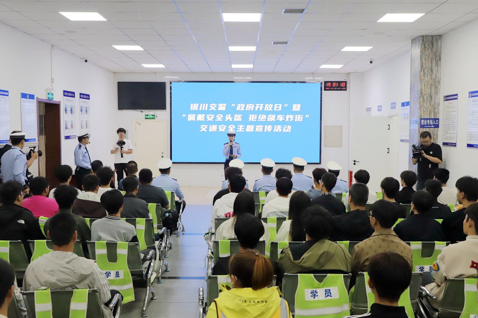 寧夏新聞網訊(記者 胡俊 文/圖)9月18日下午,銀川市公安局交通管理局聯合賀蘭縣公安局交通管理大隊、寧夏汽車摩托車協會等單位,在賀蘭縣西域摩界摩托車一站式服務中心,開展2025年“政府開放日”暨“佩戴安全頭盔 拒絕飆車炸街”交通安全主題宣傳活動。