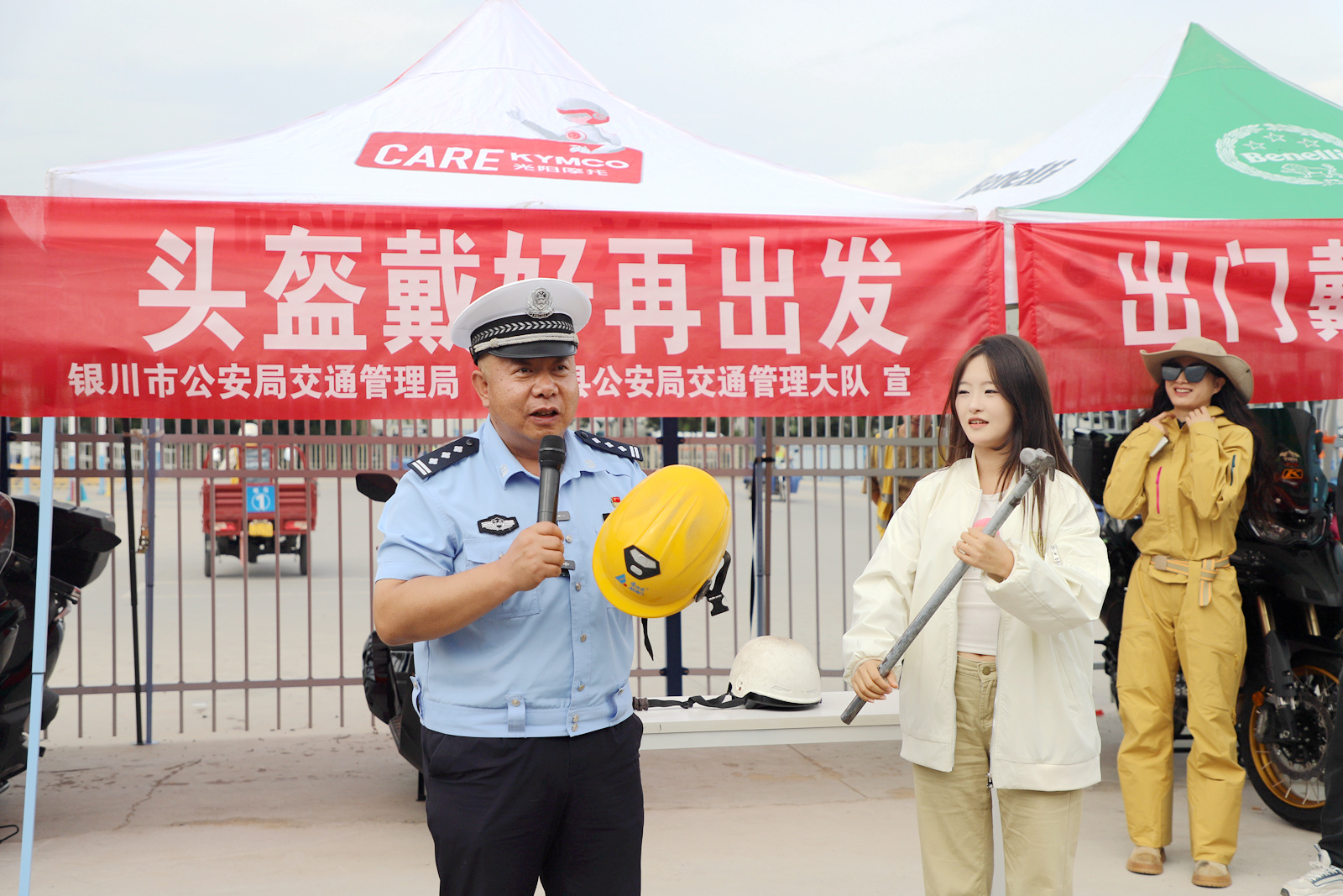 活動現場,銀川交警通過多種形式傳遞安全理念。開篇的交通安全宣講直擊人心,屏幕上播放的多起不佩戴頭盔引發的慘烈事故畫面,以真實事故場景進一步敲響安全警鐘,讓在場騎手深刻認識到危險駕駛的致命后果。