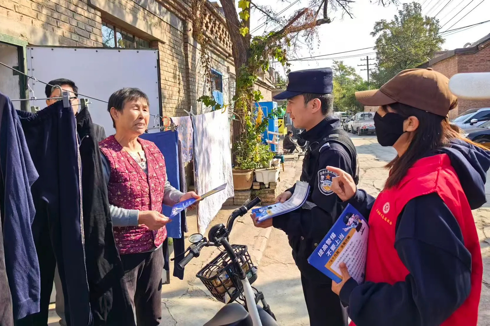 “前幾天,西夏區一個老大爺接了一個陌生電話,點擊了鏈接,就被騙了3萬元。叔叔阿姨們,你們有啥不明白的就問我,記住外地的陌生電話不要接,更不要點擊陌生鏈接?!狈丛p宣傳一路講完,李柏良和童碩拎著一袋水果,熟門熟路地敲開了獨居老人王阿姨的家門。“王阿姨,上次說那堂‘神醫’養生課,您沒信吧?今天再來跟您念叨念叨新花樣……”這是北京西路派出所星光巷社區警務室將反詐工作融入日常走訪的一個縮影。