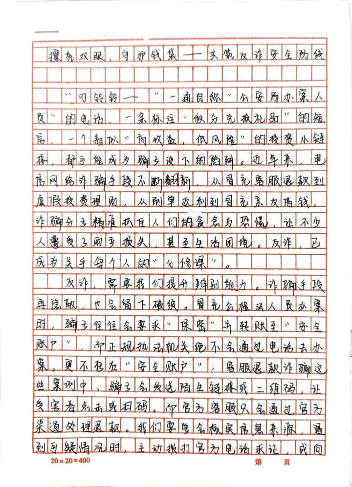 此次評選的優秀作品均主題鮮明、創意十足,充分展現了寧夏職業技術大學學子的才華與對反詐的深刻理解。同時,通過“手寫反詐”的實踐方式,讓抽象的反詐知識轉化為具象的文字思考,有效提升了學生們的防騙意識和應變能力,形成了“創作、傳播、再創作”的良性循環。目前,這些承載著反詐智慧的作品已匯編成冊,在校園安全教育專欄進行長期展示。