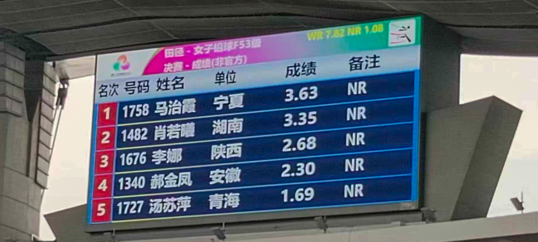 寧夏新聞網訊(記者 金文陽 文/圖)12月13日,在全國第十二屆殘疾人運動會暨第九屆特殊奧林匹克運動會田徑項目賽場上,寧夏選手馬治霞在女子F53級鉛球決賽中,以3.63米的成績打破了該項目塵封四年的全國紀錄。這位曾在2014年因高空墜落致胸椎粉碎性骨折的建筑女工,用11年拼搏奮進的精神,重新改寫了自己的人生軌跡。