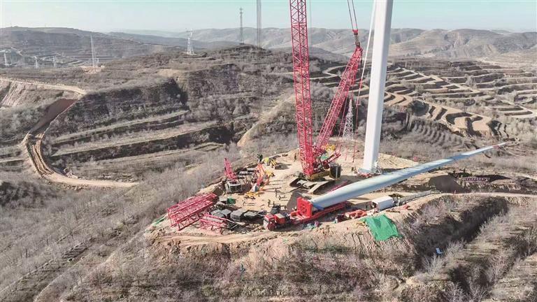 11月30日,隆德縣好水鄉國能寧湘直流配套固原100萬千瓦風電項目施工現場,風機塔筒巍然聳立,工人們緊張有序地開展風機葉片吊裝工作。據了解,該項目建成投產后,預計年發電量約3億千瓦時,跨區輸送至湖南,實現寧夏優勢能源資源的開發與外送,促進綠色能源大范圍配置消納,具有良好的經濟效益和環保效益。同時,按火電煤耗301.5g/kWh折算,每年可節約標煤4.71萬噸,減排二氧化碳14.17萬噸、二氧化硫527噸、氮氧化物544噸、煙塵637噸,將顯著改善區域大氣環境質量。通訊員 黃天 張浩亮 攝