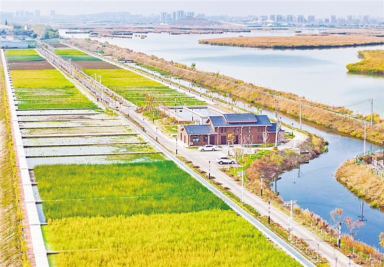 10月30日,銀川市第六污水廠片區再生水生態利用項目水凈天藍地美,為閱海湖畔增添了一抹生態底色。 記者 馬楠 王洋 攝