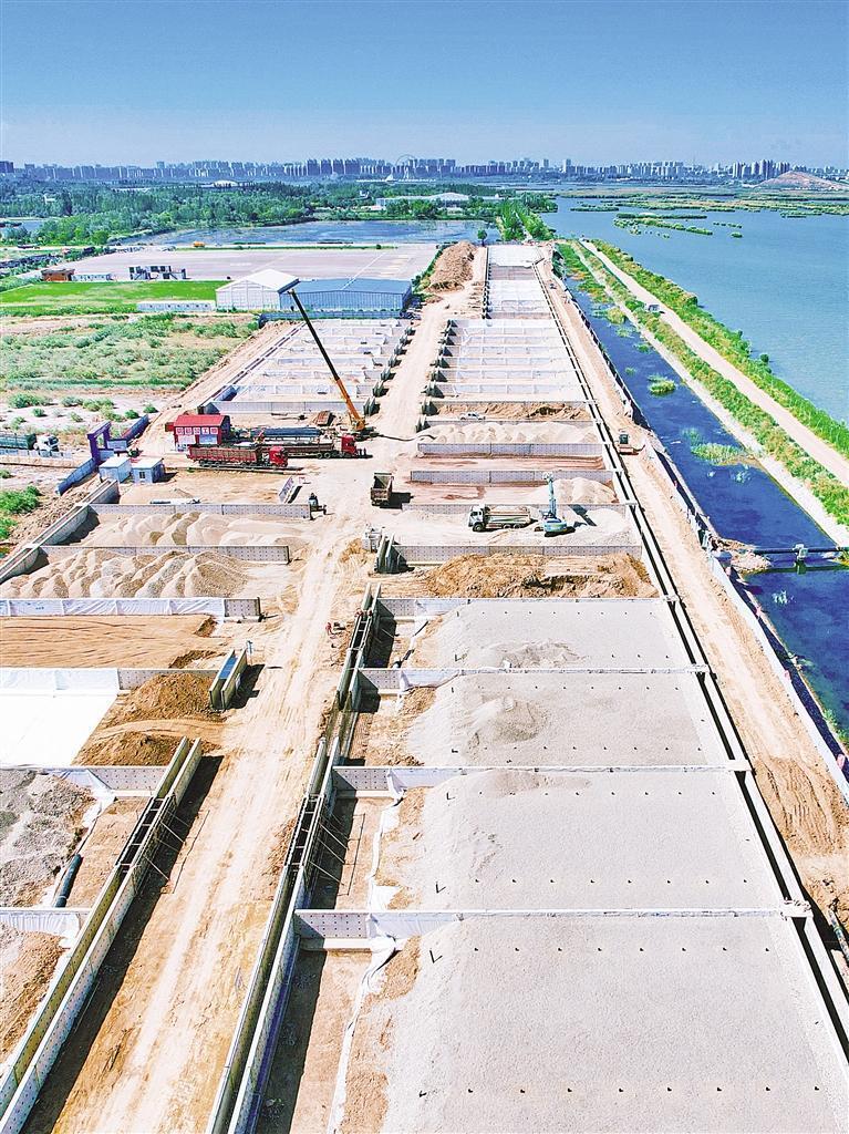 2024年8月5日,銀川市第六污水廠片區再生水生態利用項目建設現場。